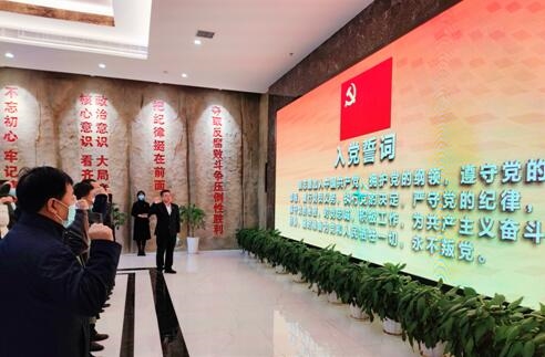 在廉政教育基地大廳,全體人員觀看了視頻《總書記的告誡》,“要堅持無禁區、全覆蓋、零容忍,堅持重遏制、強高壓、長震懾,堅持受賄行賄一起查......”總書記的話語鏗鏘有力,牢牢印在在場所有人的心中。在黨旗下,黨委書記冉龍彬帶領全體參觀人員莊嚴宣誓,重溫入黨誓詞。
