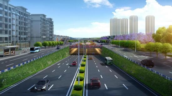 金渝大道與龍健路節點工程位于鴛鴦組團南部,西側為金山隧道,東側為鴛鴦立交,北側為湖津路,南側為龍寧路。立交主線金渝大道全長800米,含4條匝道,總長為1112.472米。項目通車后保證了金渝大道直行過境交通的暢通性,提高了金渝大道對項目區域地塊的服務功能。本項目同時獲得2022年度重慶市市政工程金杯獎