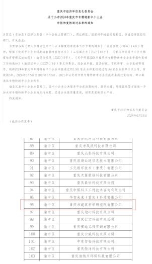 6月16日,從市經(jīng)濟信息委傳來喜訊,重慶設(shè)計集團所屬子企業(yè)重慶市建筑科學研究院有限公司獲2024年重慶市專精特新中小企業(yè)稱號。