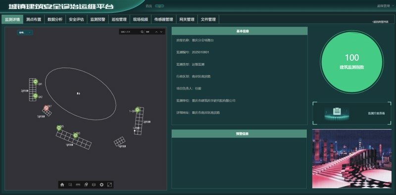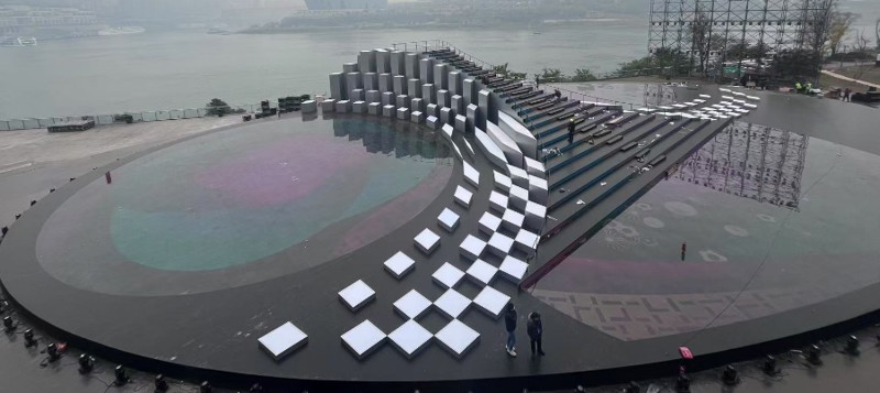 春晚重慶分會場臨時搭建舞臺位于南岸區(qū)南濱路彈子石廣場,此次評估工作范圍覆蓋了春晚分會場舞臺臨時搭建結(jié)構(gòu)的各個環(huán)節(jié)。市建科院評估小組首先對舞臺整體結(jié)構(gòu)進行了細致勘察,借助專業(yè)檢測設(shè)備對舞臺的承重能力、支撐結(jié)構(gòu)的穩(wěn)固性等關(guān)鍵指標進行了精準測量、計算分析,開展舞臺基座荷載試驗,并在舞臺燈光架體上設(shè)置自動化監(jiān)測設(shè)備,在滿足每平米承重300公斤以上需求的同時保障了燈光架體的安全。評估小組還與春晚分會場工作人員進行充分溝通交流,詳細了解日常工作中遇到的安全問題以及應(yīng)對措施,對于潛在安全隱患提出整改意見建議,進一步加強安全管理工作,確保春晚分會場運行安全、穩(wěn)定、有序。