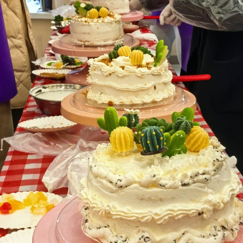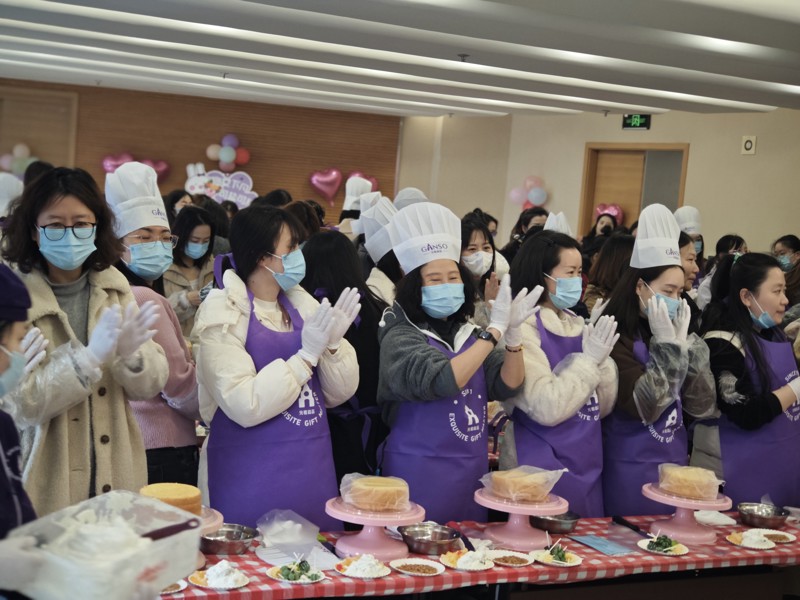 活動特邀專業烘焙師全程指導,現場宛如專業烘焙工坊,轉臺、抹刀等專業器具及新鮮食材一應俱全。烘焙師現場示范蛋糕制作的抹面技法,重點講解裱花技巧、裝飾布局等實操要點。女職工分組操作,通過奶油調色、裱花造型等創意實踐,完成各具特色的節日蛋糕?,F場此起彼伏的交流聲與歡笑聲中,既有裱花失誤引發的趣味互動,也不乏驚艷造型收獲的集體贊嘆。制作完成后,女職工們攜作品合影留念,并將成品封裝帶回家中分享。