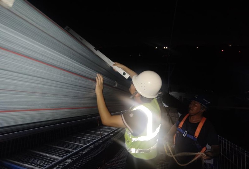 自2025年5月31日大橋基準(zhǔn)索股牽引過江以來,建科人的身影無處不在。市建科院監(jiān)理團隊風(fēng)雨兼程、風(fēng)雨無阻、風(fēng)雨不懼,克服有風(fēng)有雨、高溫酷暑的施工環(huán)境,在長江江面百米的高空貓道上,頭頂烈日來回穿行、揮汗如淚。